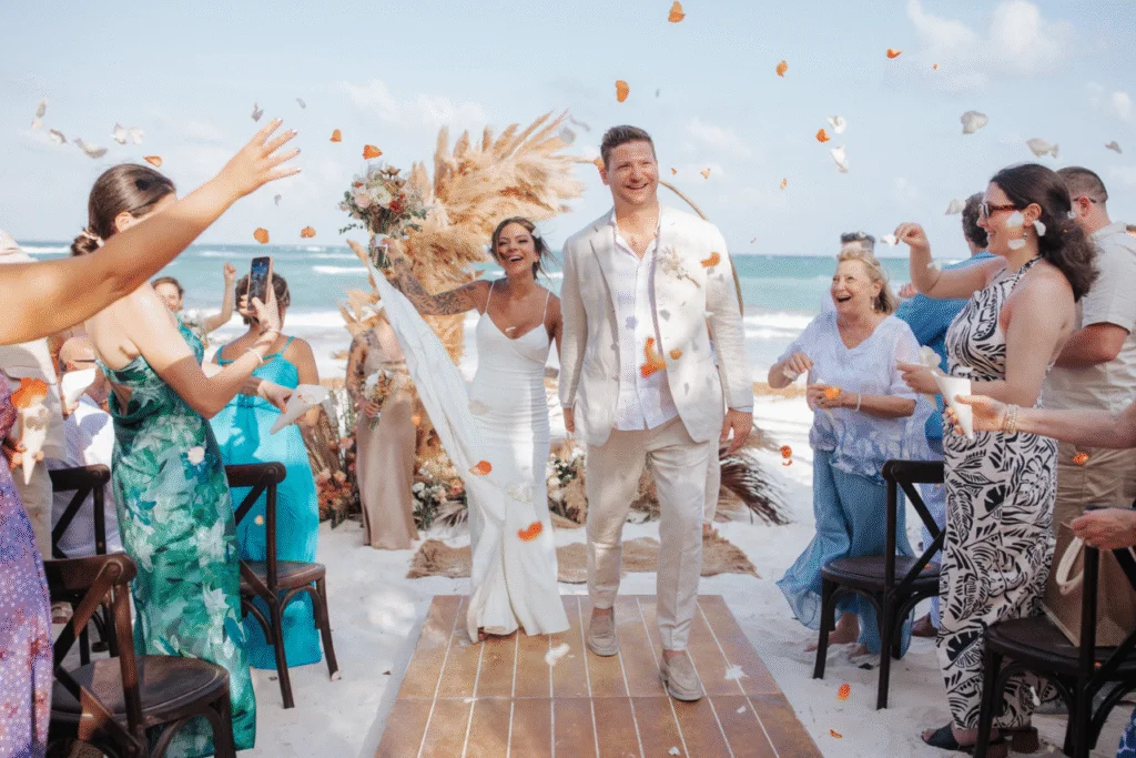 The DeAsis couple exchanged their vows against the backdrop of turquoise waters, pristine beaches, and ancient Mayan ruins. Tulum, Mexico, a unique blend of natural beauty, cultural richness, and romantic ambiance, making it magical | Tulum – MX